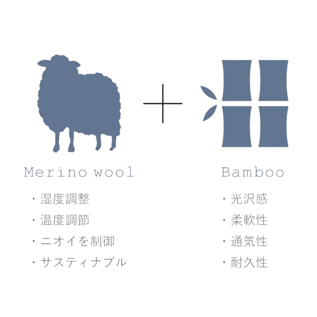 ・メリノウール:「動物福祉の5つの自由」を遵守するアメリカの農家から調達。環境に優しい加工法で、自然に生分解される。