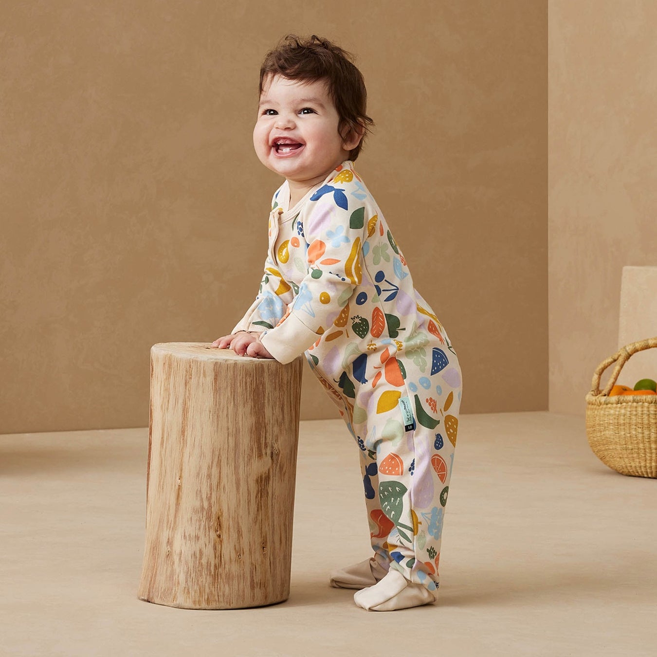 過ごしやすい日には1枚で着たり、涼しくなってきたらスワドルやスリーパーの下に着て快適に過ごせます。3方向ジッパーのおかげでおむつ交換や着替えが簡単。首元にはジッパーガードもついているので、赤ちゃんのデリケートな肌を守ります。